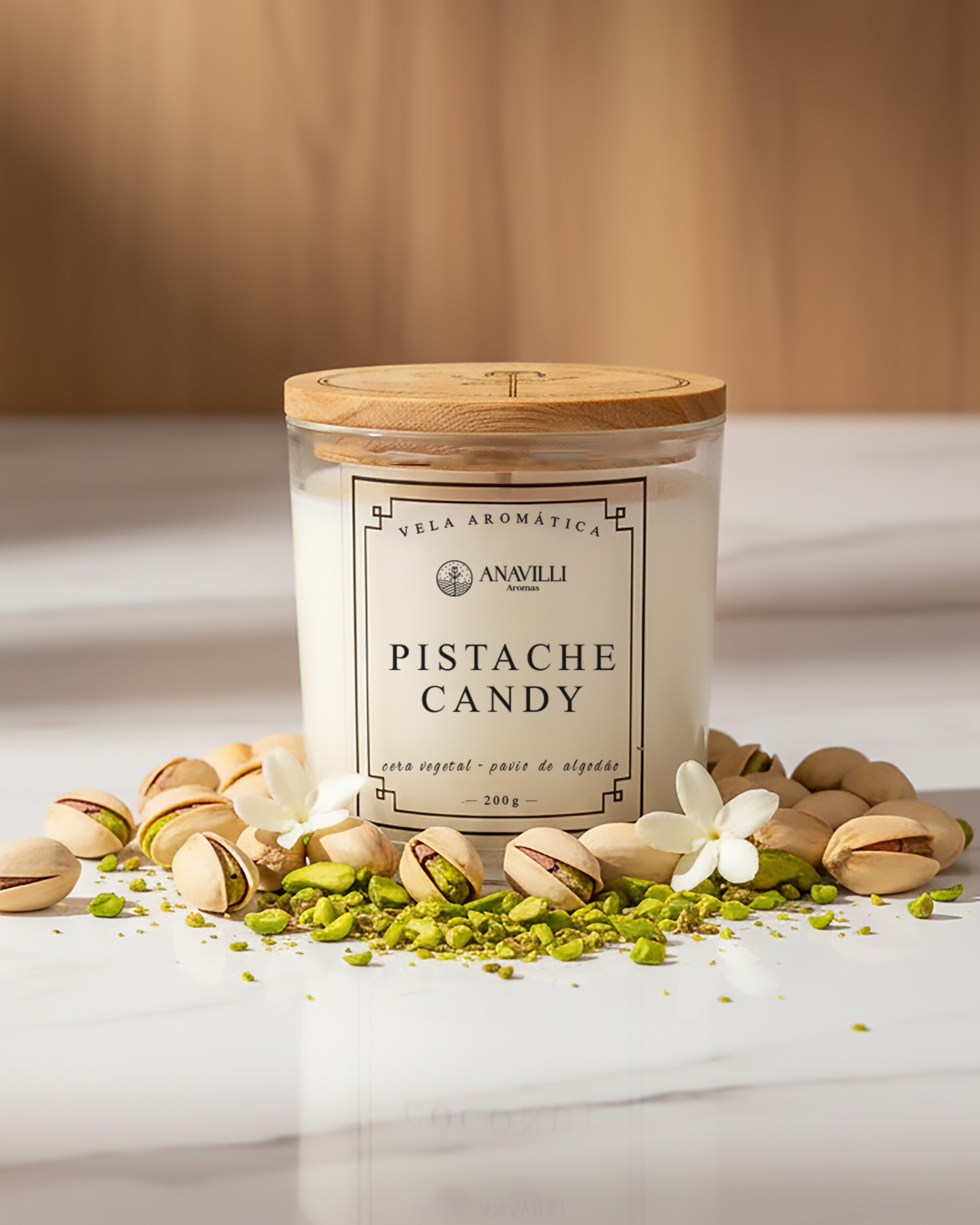 Um aroma gourmand que encanta. A Vela Pistache Candy mistura a suavidade do pistache com notas adocicadas e delicadas, criando uma fragrância sofisticada e ao mesmo tempo aconchegante. Ideal para quem deseja um ambiente doce, elegante e acolhedor.